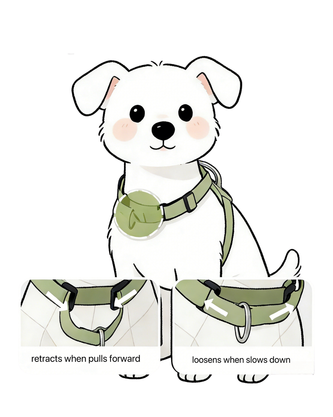 Made with soft, breathable, eco-friendly RPET fabric, the harness moves with them, not against them.